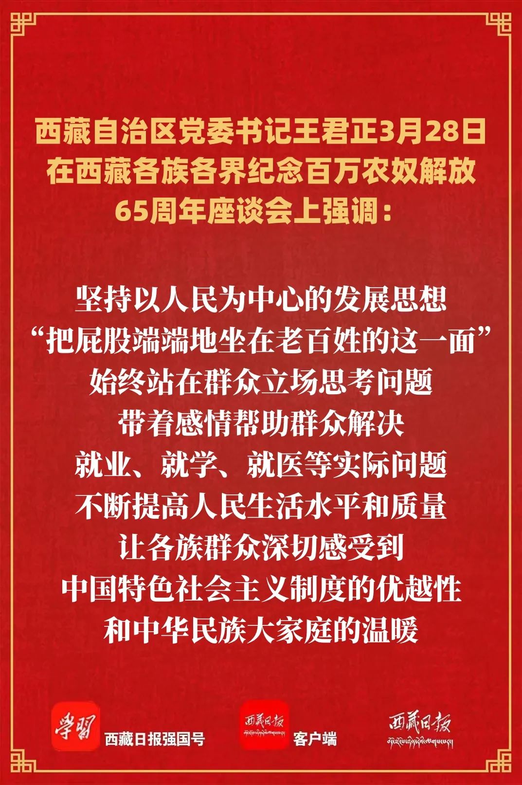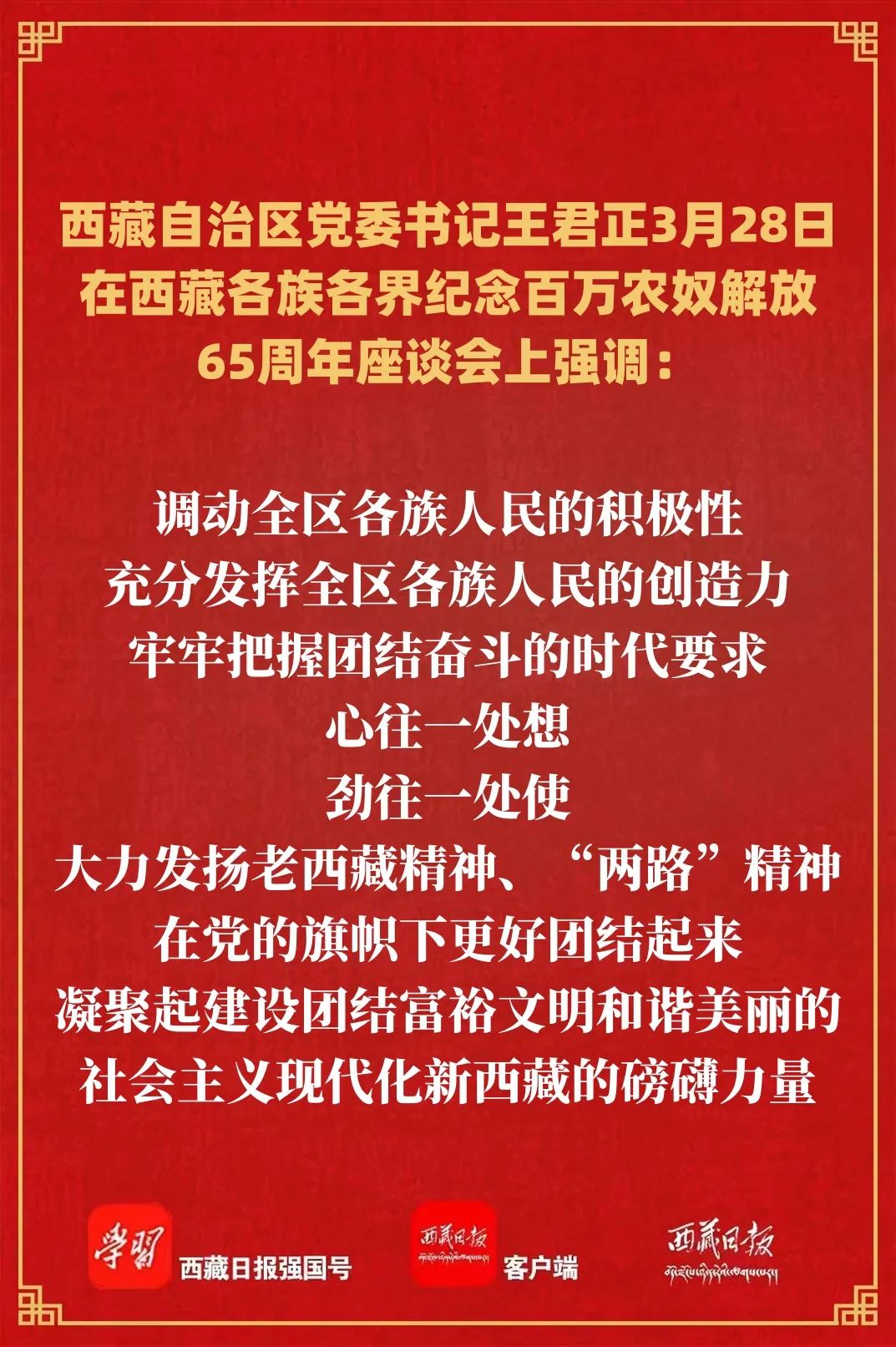 西藏各族各界纪念百万农奴解放65周年座谈会召开 王君正出席并讲话