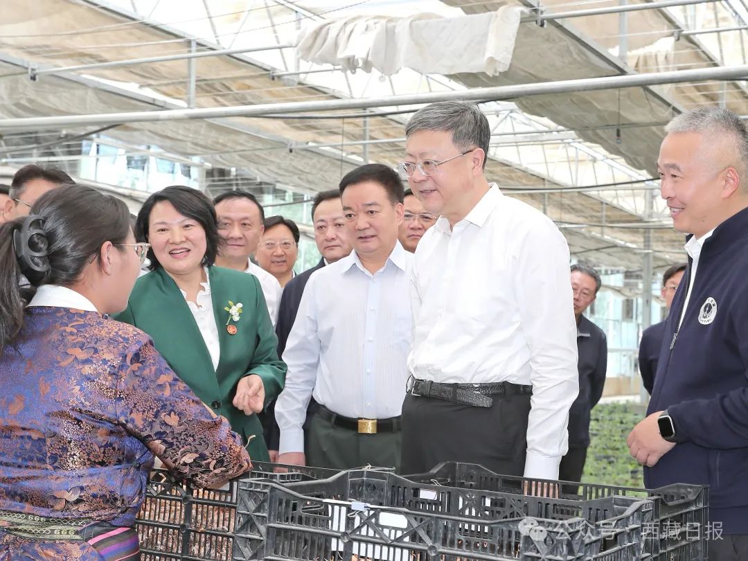 来到萨迦县国家现代农业产业园,温室大棚内作物长势良好,一派生机盎然。近年来,在自治区党委的大力推动下,上海市援藏力量主动作为,助力当地大力发展高原特色农业,不断拓宽群众增收渠道。代表团走进产业园,听取高原藜麦种源科技和产业发展、藏红花种植技术创新和产业帮扶情况介绍,察看相关产品展示,与园区、企业负责人和科研团队深入交流,就进一步推进高寒地区现代农业全产业链高质量发展进行讨论。两地同志表示,要立足双方优势,把上海资金、管理、科技、人才等优势与西藏资源、区位等优势相结合,进一步做强特色产业、打响高原品牌,在以销定产、产品推广等方面开展深度合作,促进西藏优质资源变成好产品、走向大市场、卖出好价钱,有效带动群众就业增收,让各族群众钱包鼓起来、日子好起来。