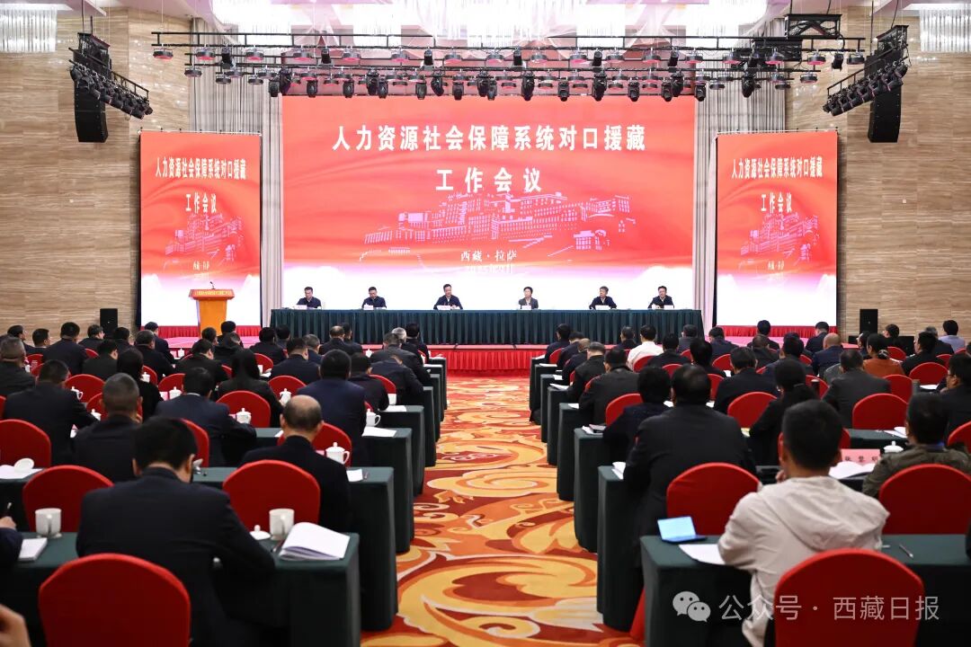 王晓萍代表人力资源社会保障部向自治区党委、政府长期以来对人社工作的关心支持表示感谢。她说,对口支援西藏是党中央从党和国家工作全局出发作出的重大战略决策,是先富帮后富、最终实现共同富裕的重大举措,是社会主义制度集中力量办大事显著优势的集中体现。人社系统深入学习贯彻习近平总书记关于西藏工作的重要指示和新时代党的治藏方略,坚持把援藏工作作为重大政治任务,全面服务西藏发展所需、民生所盼,聚焦稳定、发展、生态、强边四件大事,发挥人社职能优势,建机制聚合力,拓渠道稳就业,强培训提技能,聚人才激活力,优服务夯基础,为促进西藏经济社会高质量发展发挥了积极作用。在开启西藏新征程之际,以习近平同志为核心的党中央对建设社会主义现代化新西藏作出重大部署,对做好对口援藏工作提出新任务新要求。我们要坚持以习近平新时代中国特色社会主义思想为指导,深化就业稳藏,健全跨区域劳务协作机制,完善区外转移就业服务,精准开发就业岗位,在拓宽渠道和提升质量上实现新突破;深化人才强藏,聚焦西藏经济社会发展重要任务和重点领域,广泛搭建人才交流平台,优化“组团式”柔性支援,在引进培育和优化环境上展现新作为;深化富民兴藏,大力推动技能增收、社保惠民、服务便民等工作,在技能提升和公共服务上构建新支撑。