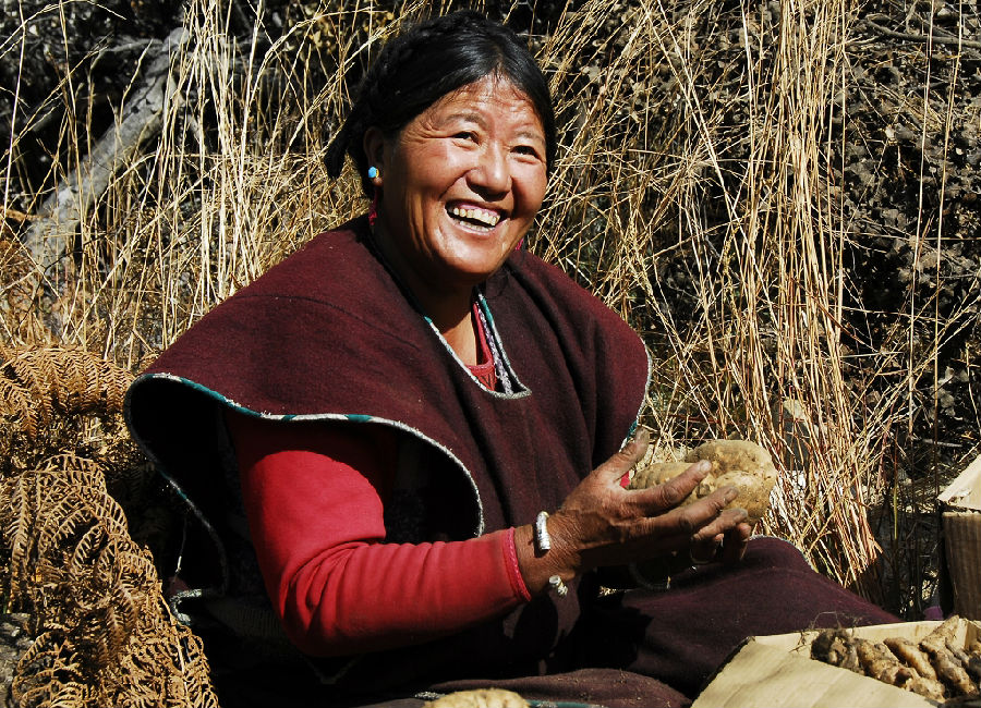 图为林芝县久巴村村民巴吉收获天麻时喜悦的情景,达珍摄,图片来源:中国西藏新闻网。