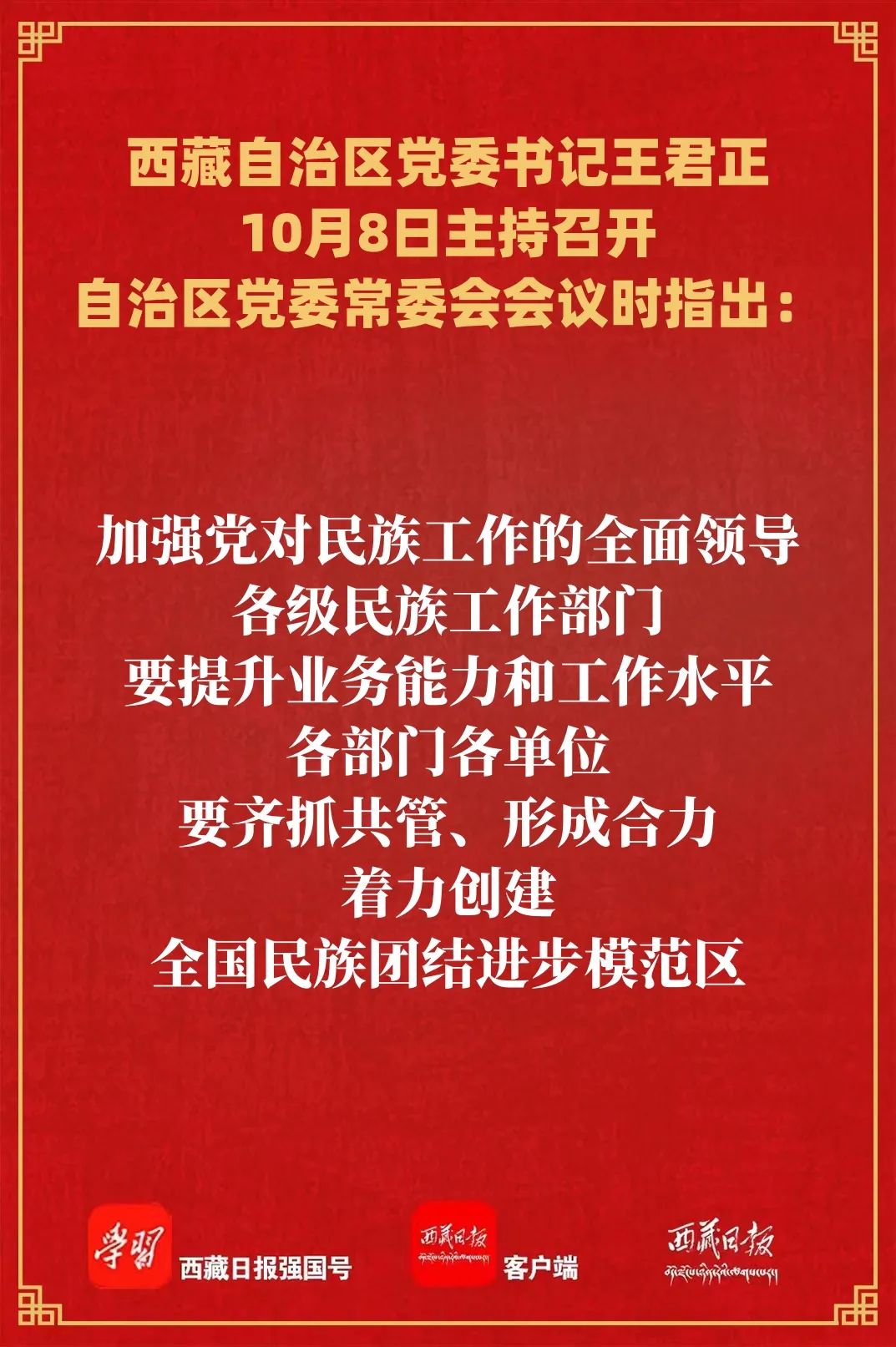 10月8日,自治区党委书记王君正主持召开自治区党委常委会会议,认真传达学习习近平总书记近期重要讲话重要指示精神和中央有关会议精神,研究我区贯彻落实意见。