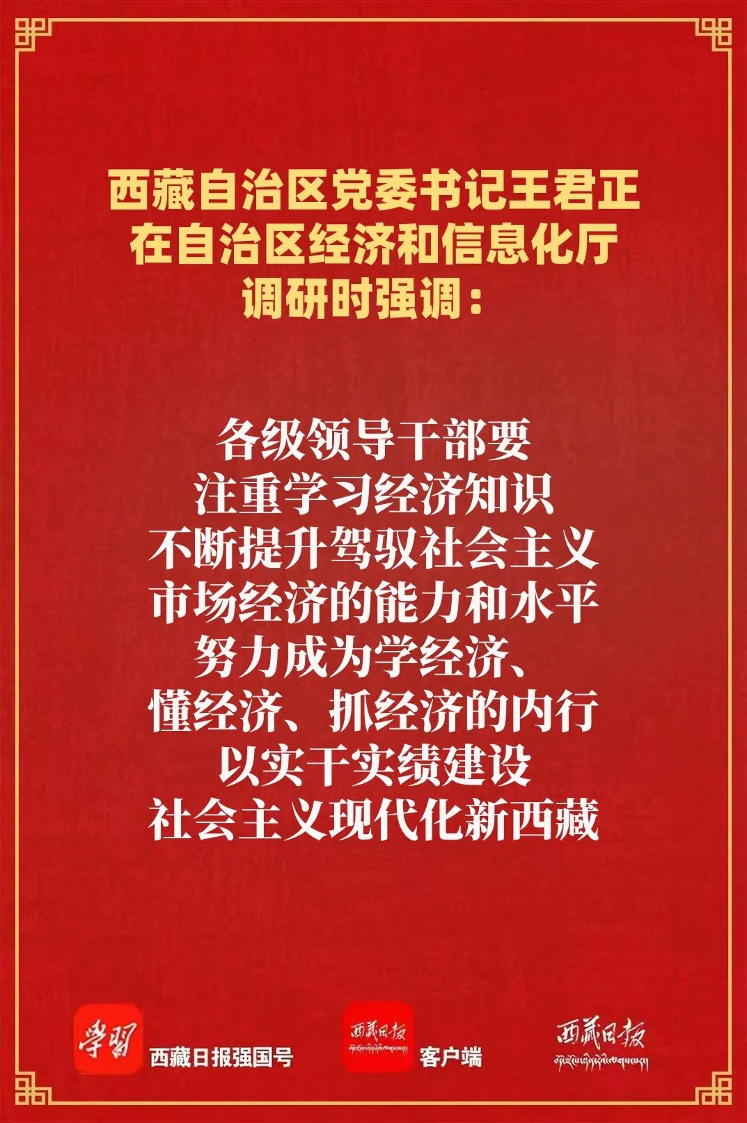 王君正强调,要坚持和加强党的领导,改进作风狠抓落实,以求真务实的精神把各项工作任务落到实处。深化全面从严治党,认真开展深入贯彻中央八项规定精神学习教育,推动作风建设常态化长效化。加强人才队伍建设,凭能力用干部、以实绩论英雄,打造一支忠诚干净担当的高素质干部队伍。各级领导干部要注重学习经济知识,不断提升驾驭社会主义市场经济的能力和水平,努力成为学经济、懂经济、抓经济的内行,以实干实绩建设社会主义现代化新西藏。